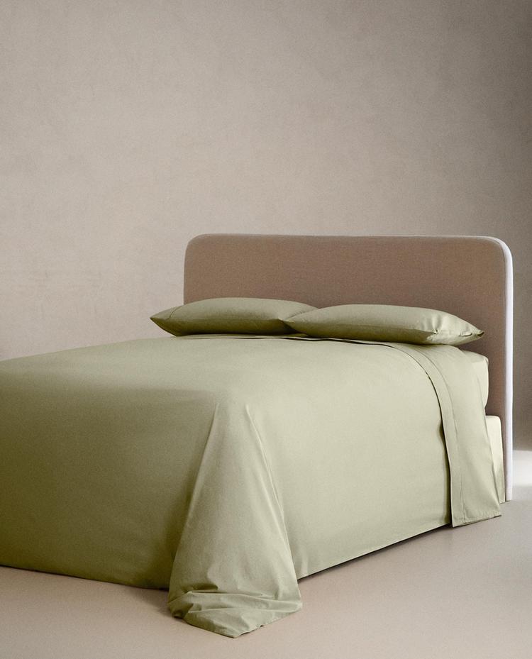 ZARA HOME (300 НИТЕЙ) НАТЯЖНАЯ ПРОСТЫНЯ ИЗ ХЛОПКА, СВЕТЛО-ЗЕЛЕНЫЙ