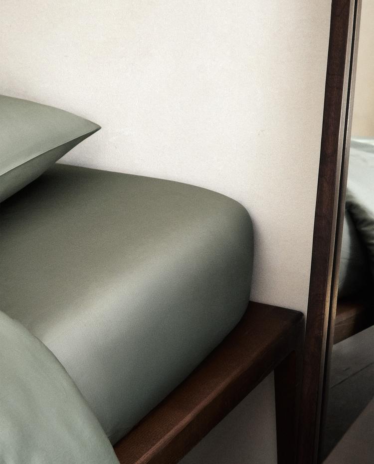 ZARA HOME (300 НИТЕЙ) ПРОСТЫНЯ НА РЕЗИНКЕ ИЗ САТИНА | ВЫСОТА 40 СМ, СИНИЙ