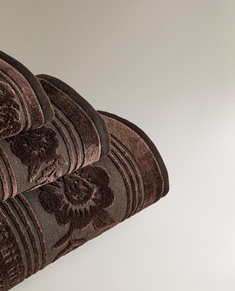 ZARA HOME БАННОЕ ПОЛОТЕНЦЕ ИЗ ЖАККАРДА, ШОКОЛАДНО-КОРИЧНЕВЫЙ