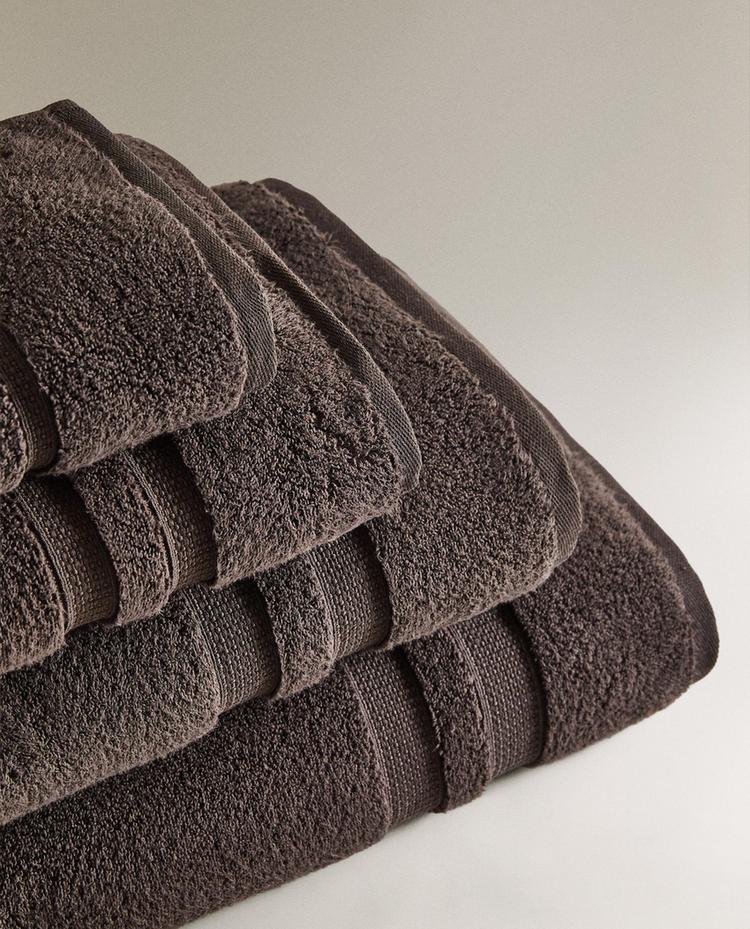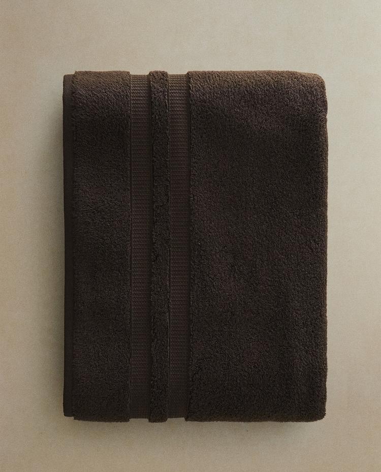 ZARA HOME БАННОЕ ПОЛОТЕНЦЕ С ДВОЙНОЙ КАЙМОЙ, КОРИЧНЕВЫЙ