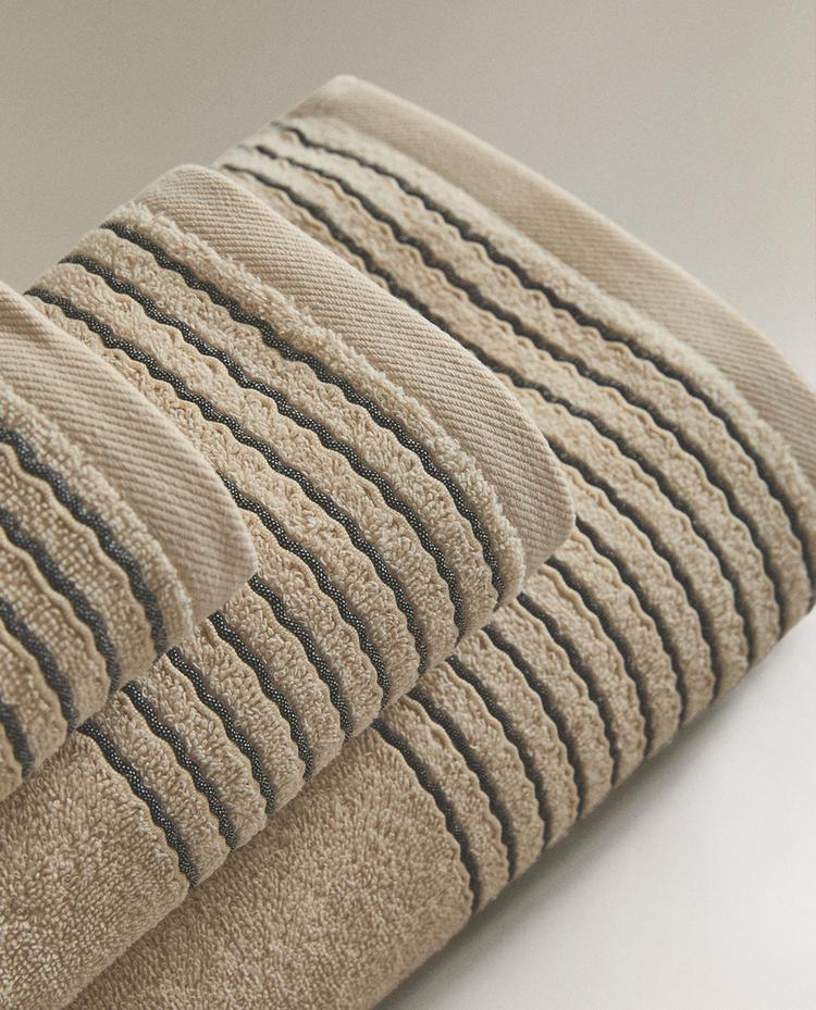 ZARA HOME БАННОЕ ПОЛОТЕНЦЕ С КАЙМОЙ, ПЕСОЧНЫЙ