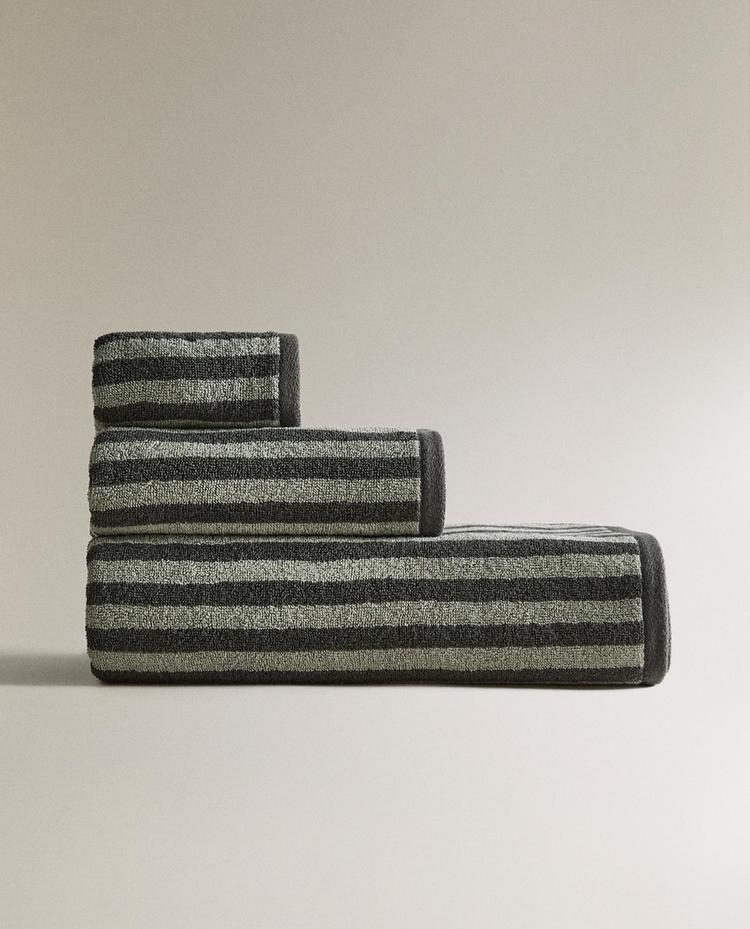 ZARA HOME БАННОЕ ПОЛОТЕНЦЕ С ЦВЕТНЫМИ ПОЛОСКАМИ, ЗЕЛЕНЫЙ