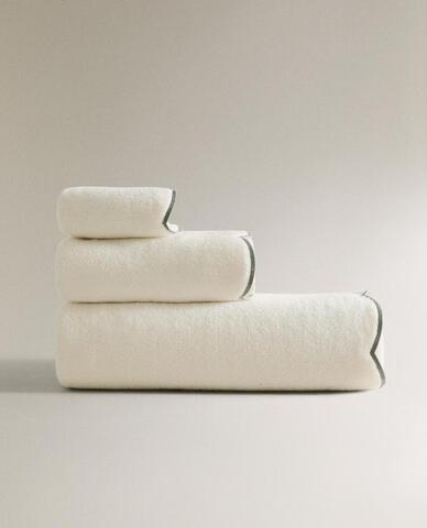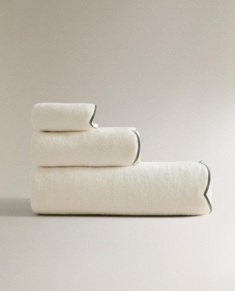 ZARA HOME БАННОЕ ПОЛОТЕНЦЕ С ВОЛНИСТЫМ КРАЕМ, ЗЕЛЕНЫЙ
