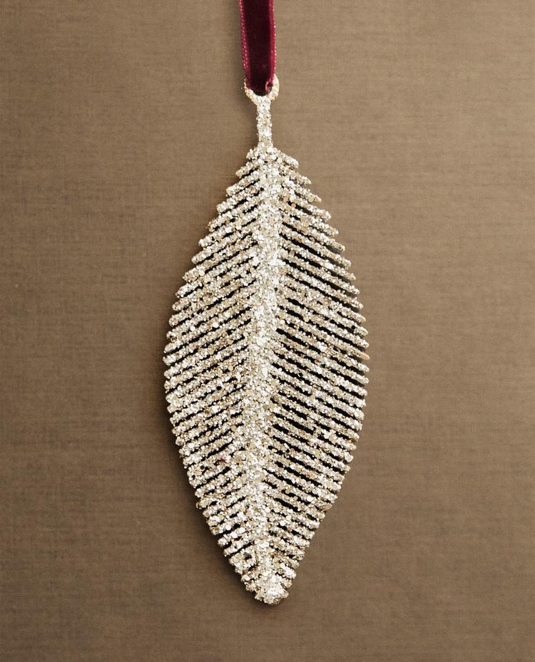 ZARA HOME БЛЕСТЯЩЕЕ ЕЛОЧНОЕ УКРАШЕНИЕ «ЛИСТ», СЕРЕБРЯНЫЙ