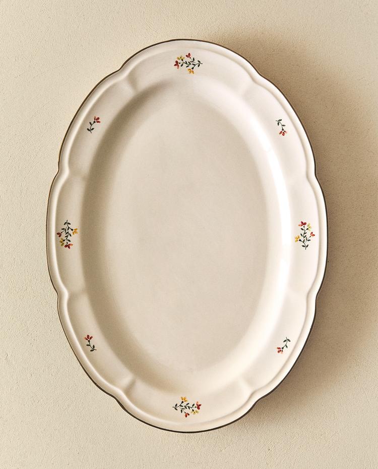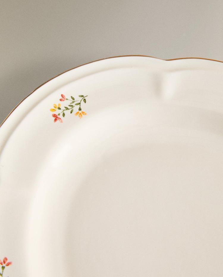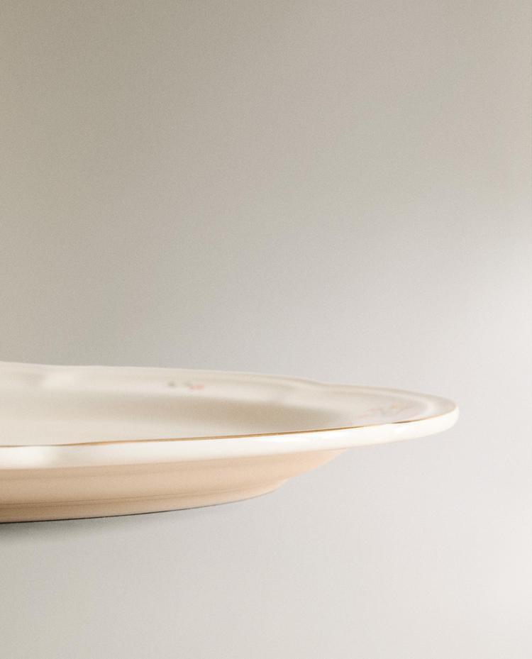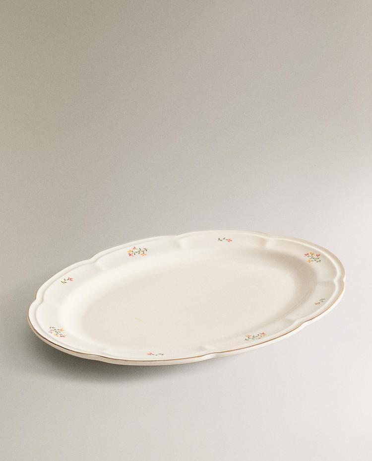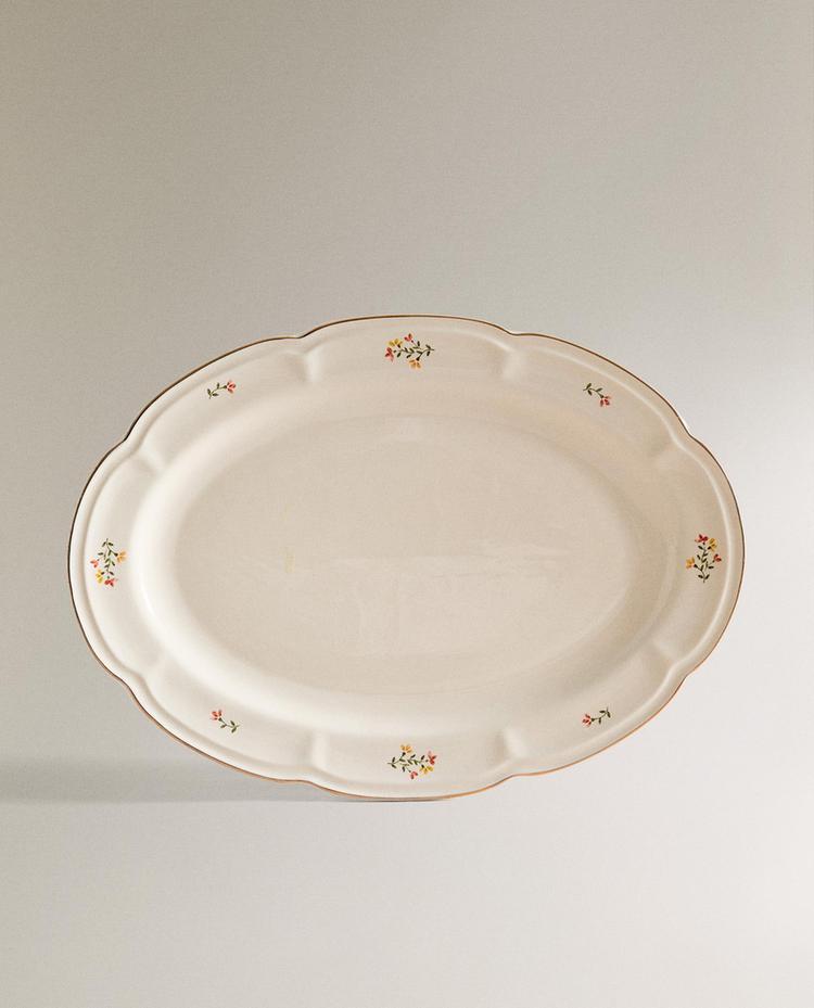 ZARA HOME БЛЮДО ИЗ ФАРФОРА С ЦВЕТОЧНЫМ РИСУНКОМ, КРЕМОВЫЙ