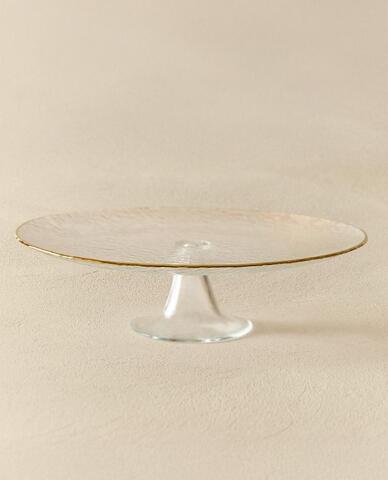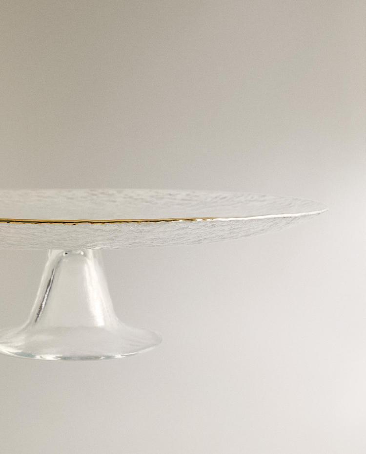 ZARA HOME БЛЮДО ИЗ СТЕКЛА С РЕЛЬЕФНЫМ УЗОРОМ И ЗОЛОТИСТОЙ КРОМКОЙ, ПРОЗРАЧНЫЙ