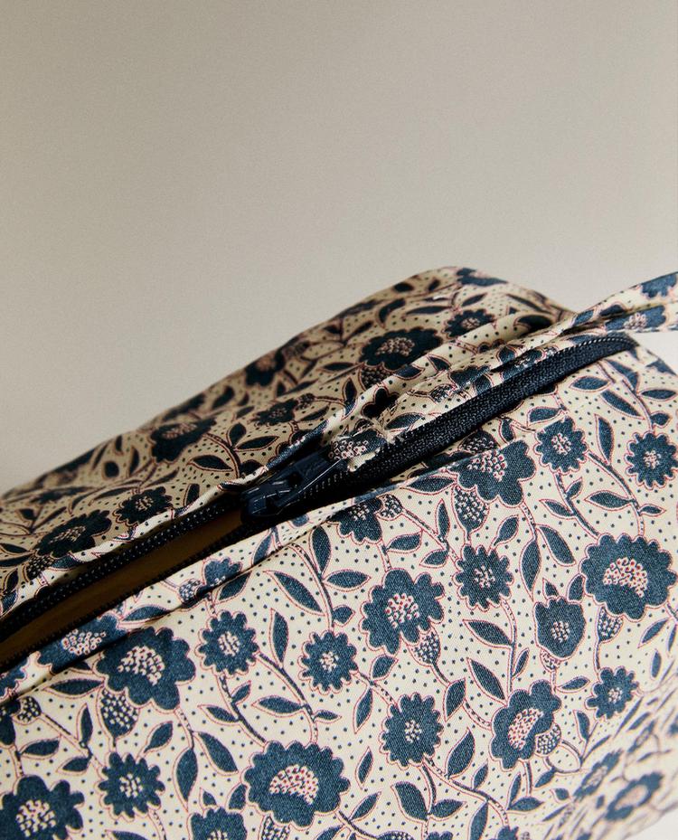 ZARA HOME ДЕТСКАЯ ХЛОПКОВАЯ КОСМЕТИЧКА С ЦВЕТОЧНЫМ ПРИНТОМ, СИНИЙ