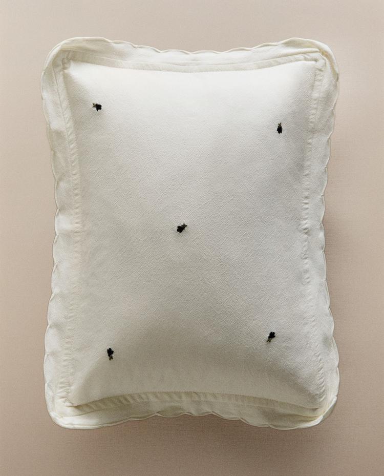 Детская наволочка с контрастными вышитыми цветами.