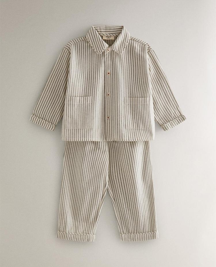 ZARA HOME ДЕТСКАЯ ПИЖАМА НА РОЖДЕСТВЕНСКУЮ ТЕМАТИКУ В ПОЛОСКУ, ЖЕЛТОВАТО-БЕЛЫЙ