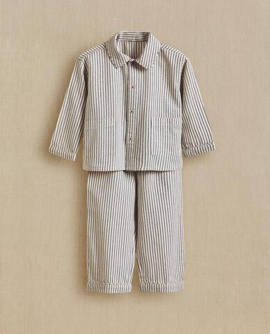 Комплект полосатой рождественской пижамы из 100% хлопка. Рубашка и штаны с длинными рукавами, воротником-стойкой, передними карманами и застёжкой на пуговицы.