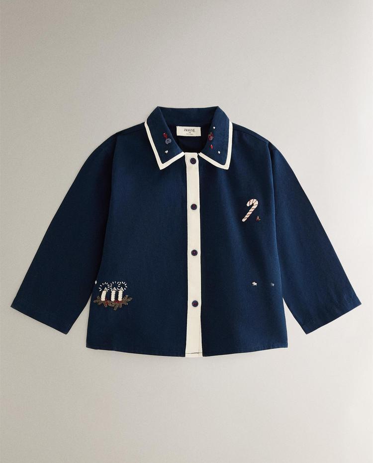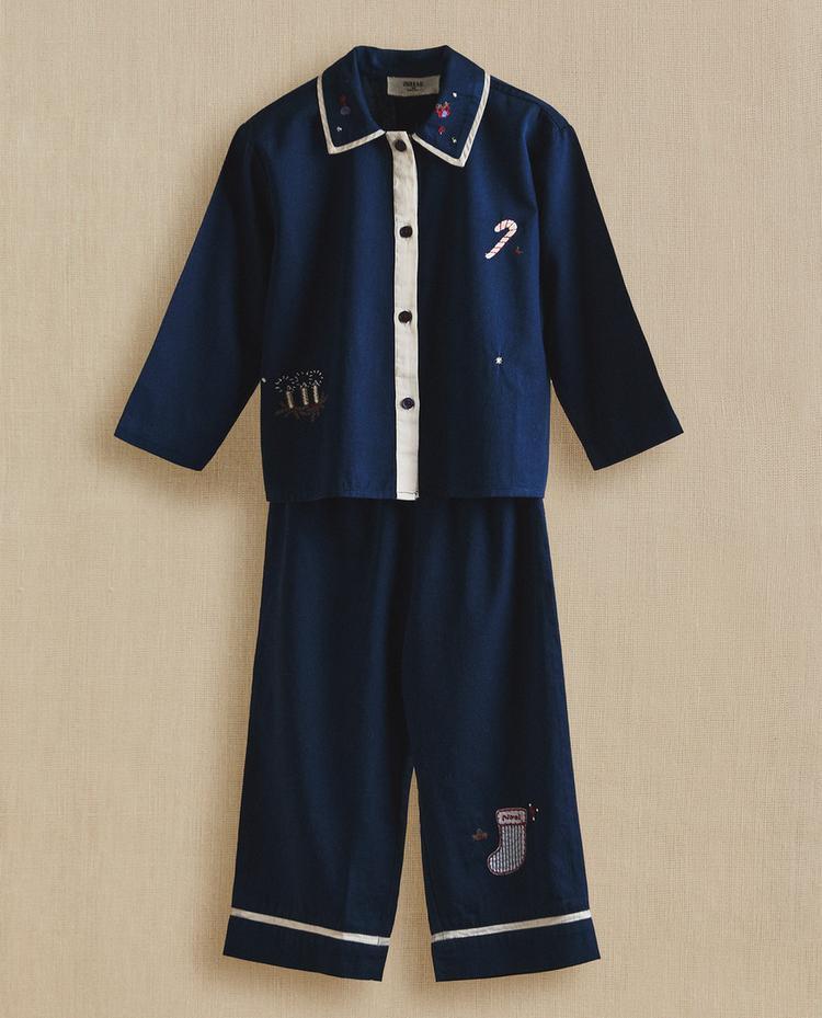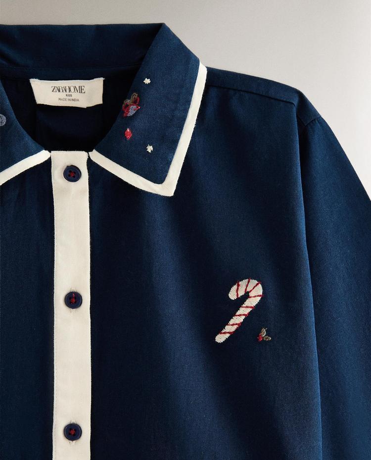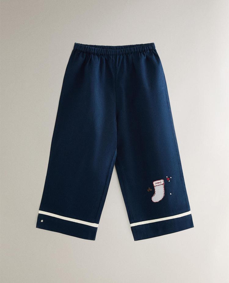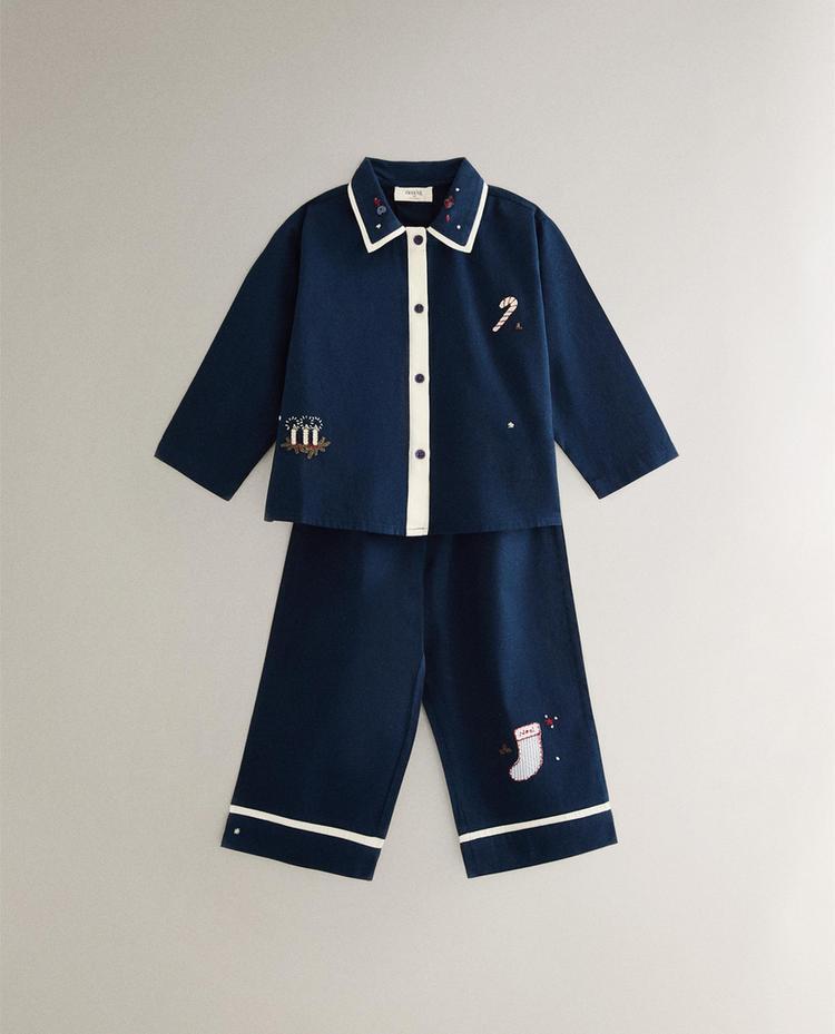 ZARA HOME ДЕТСКАЯ ПИЖАМА С РОЖДЕСТВЕНСКОЙ ВЫШИВКОЙ, СИНИЙ