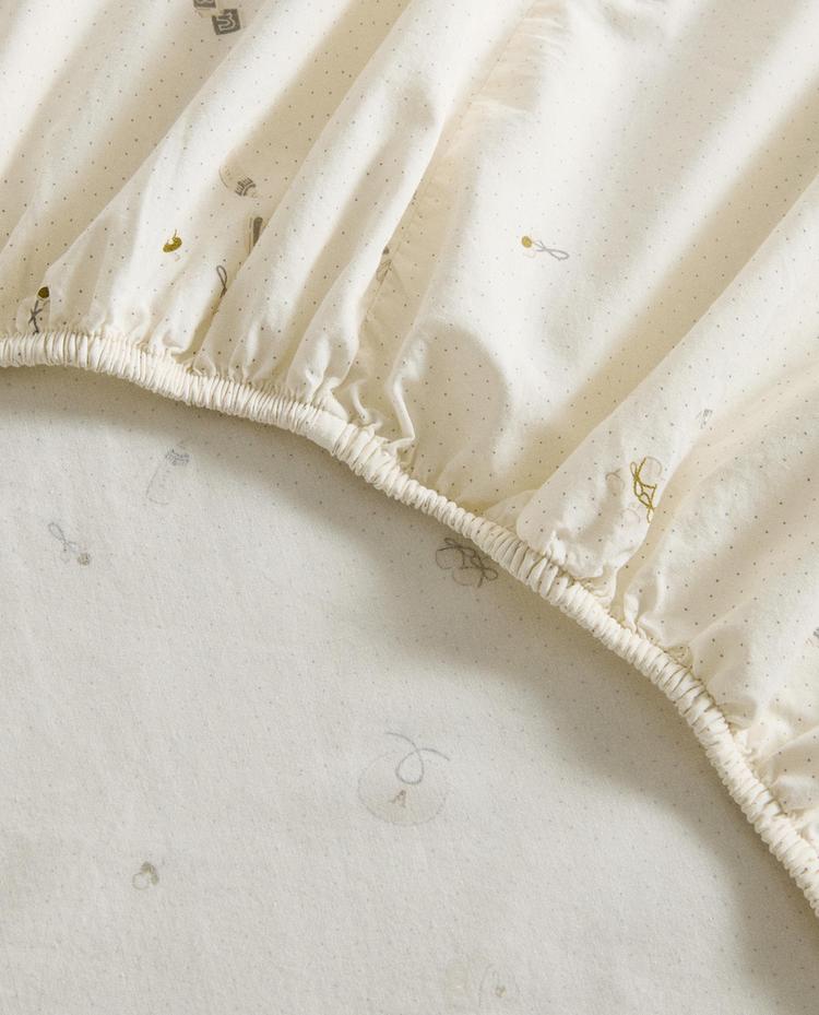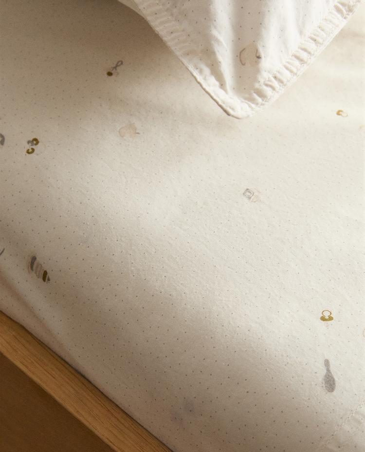 ZARA HOME ДЕТСКАЯ ПРОСТЫНЯ НА РЕЗИНКЕ С ПРИНТОМ, ЖЕЛТОВАТО-БЕЛЫЙ