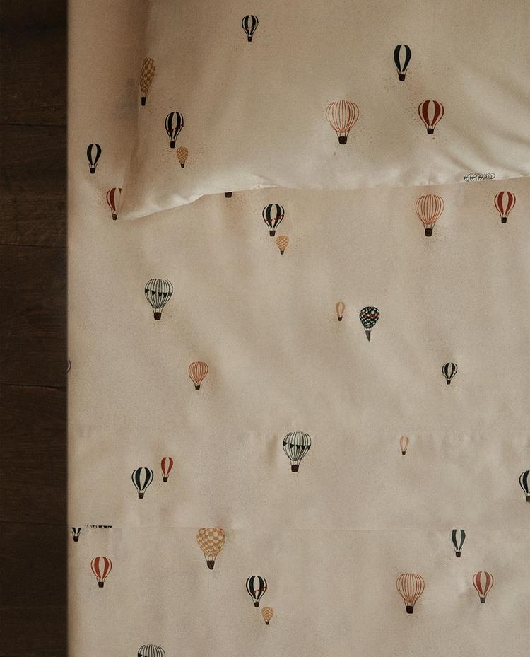 Детская простыня из хлопка плотностью 200 нитей на дюйм с рисунком воздушного шара.