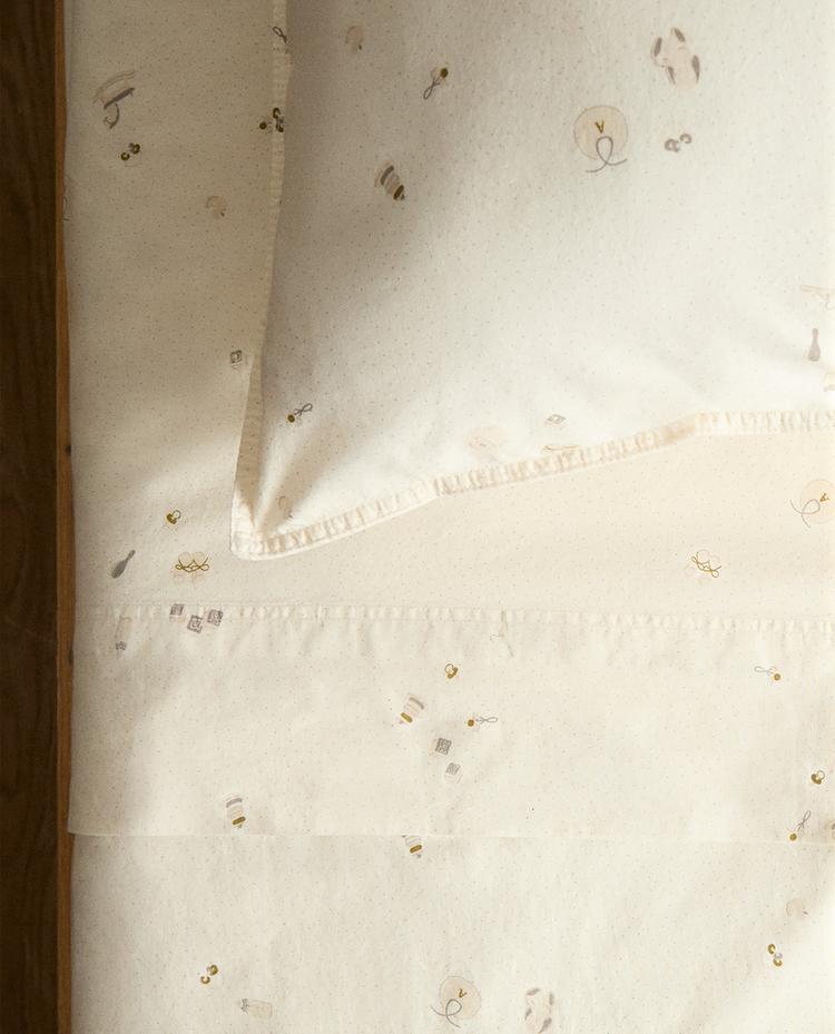 ZARA HOME ДЕТСКАЯ ПРОСТЫНЯ С ПРИНТОМ, ЖЕЛТОВАТО-БЕЛЫЙ