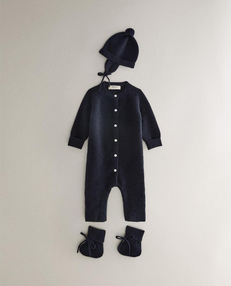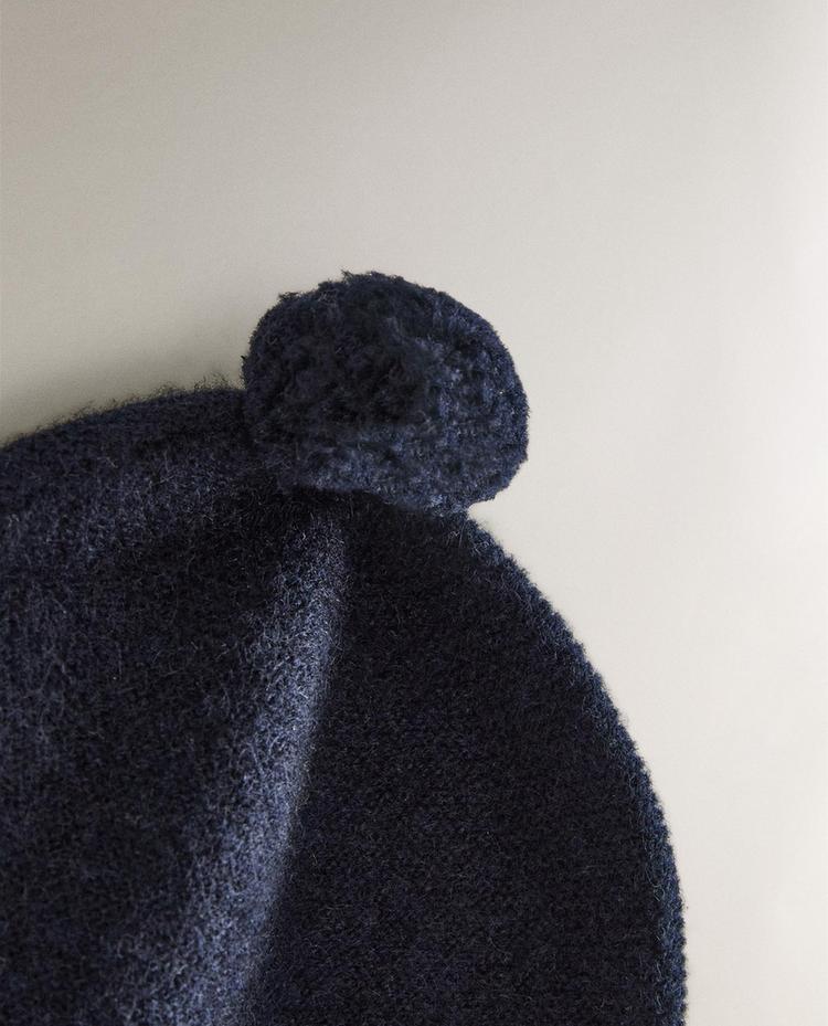 ZARA HOME ДЕТСКАЯ ШАПКА ИЗ КАШЕМИРА С ПОМПОНОМ, СИНИЙ