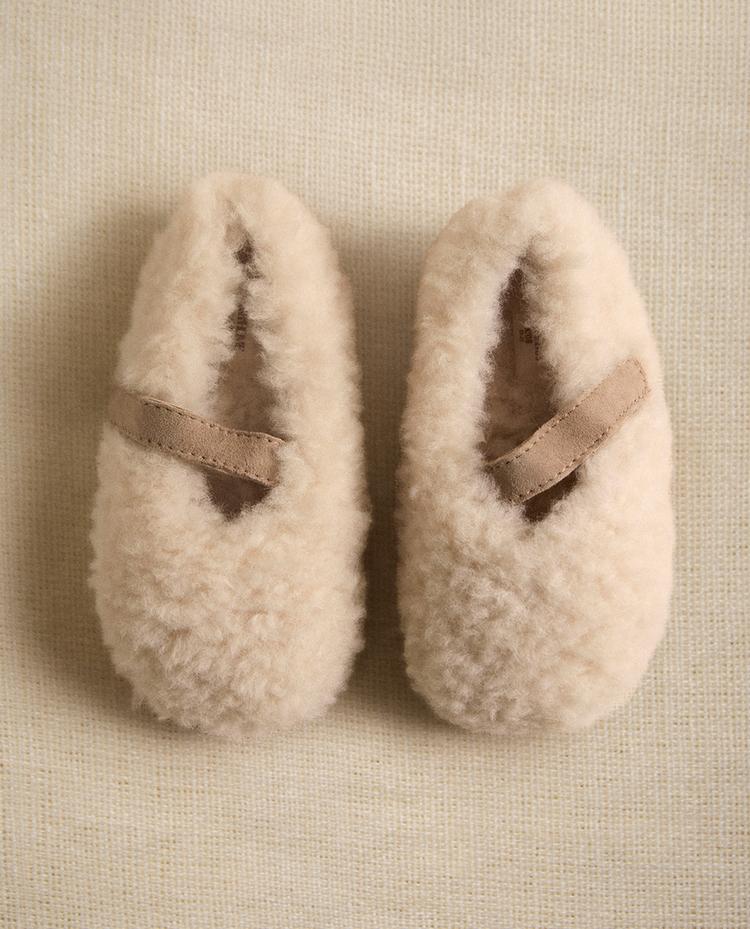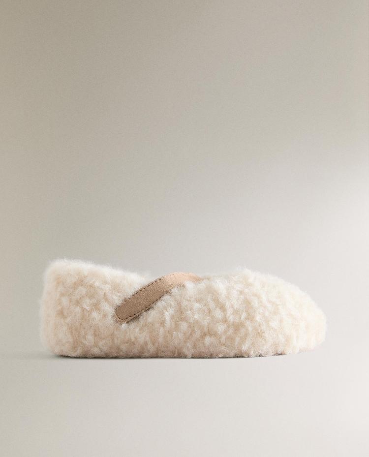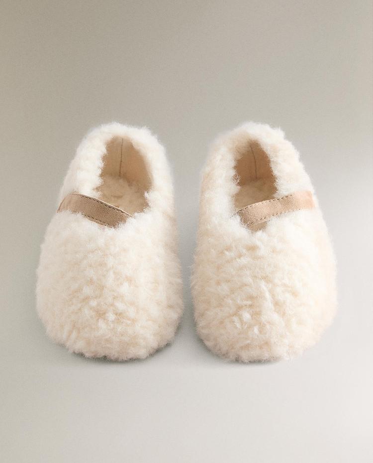 ZARA HOME ДЕТСКИЕ ТАПОЧКИ ИЗ ИСКУССТВЕННОЙ ОВЧИНЫ, ЭКРЮ
