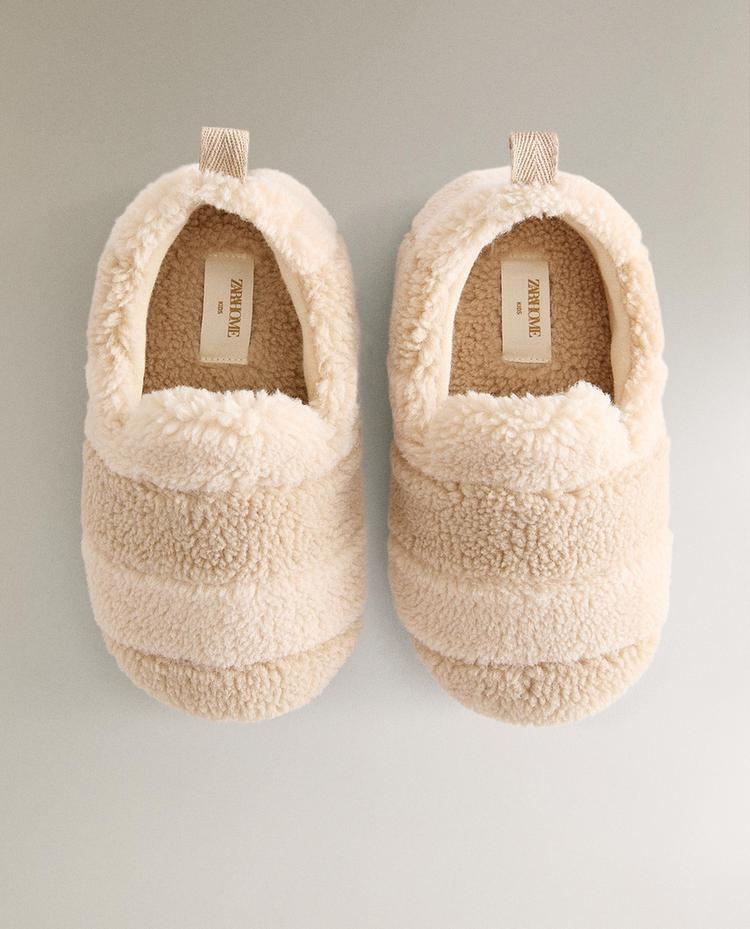 ZARA HOME ДЕТСКИЕ ТАПОЧКИ ИЗ ИСКУССТВЕННОЙ ОВЧИНЫ, НАТУРАЛЬНЫЙ