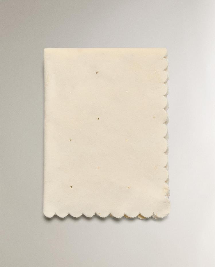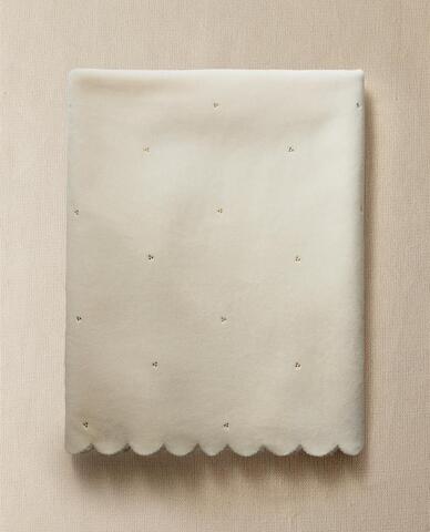 ZARA HOME ДЕТСКИЙ ФЛИСОВЫЙ ПЛЕД С ВЫШИВКОЙ, КРЕМОВЫЙ