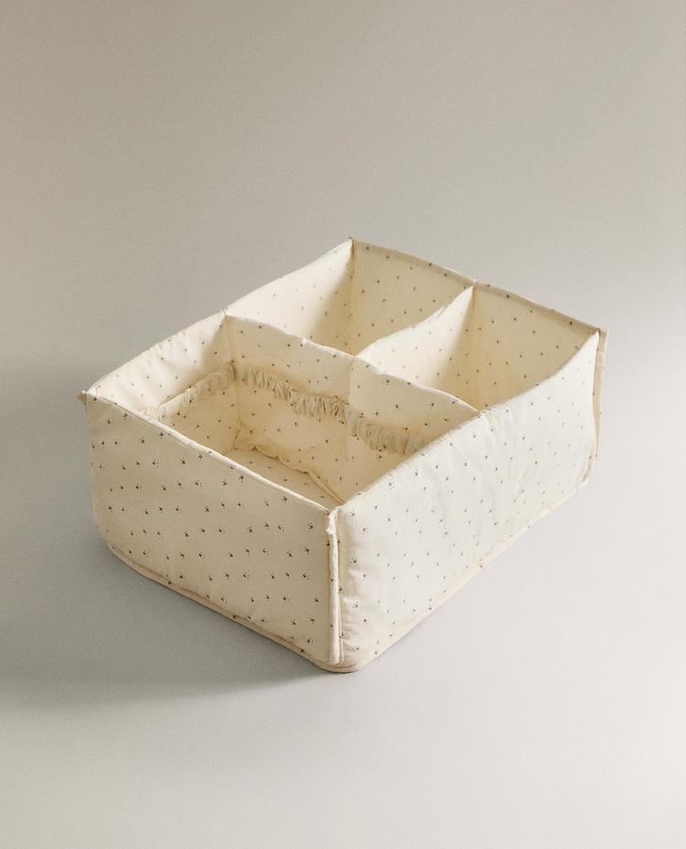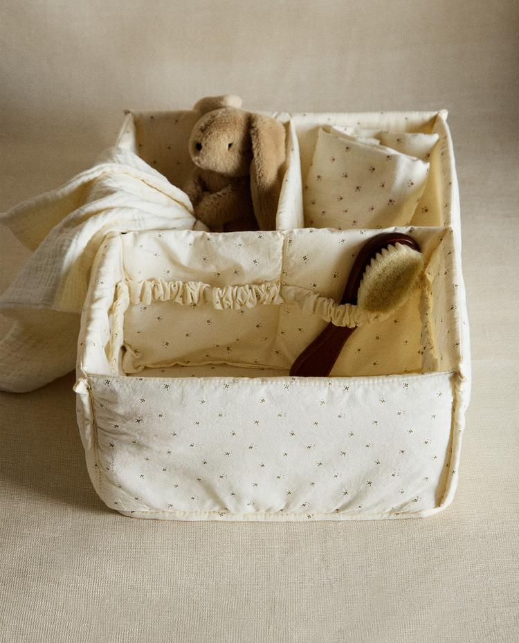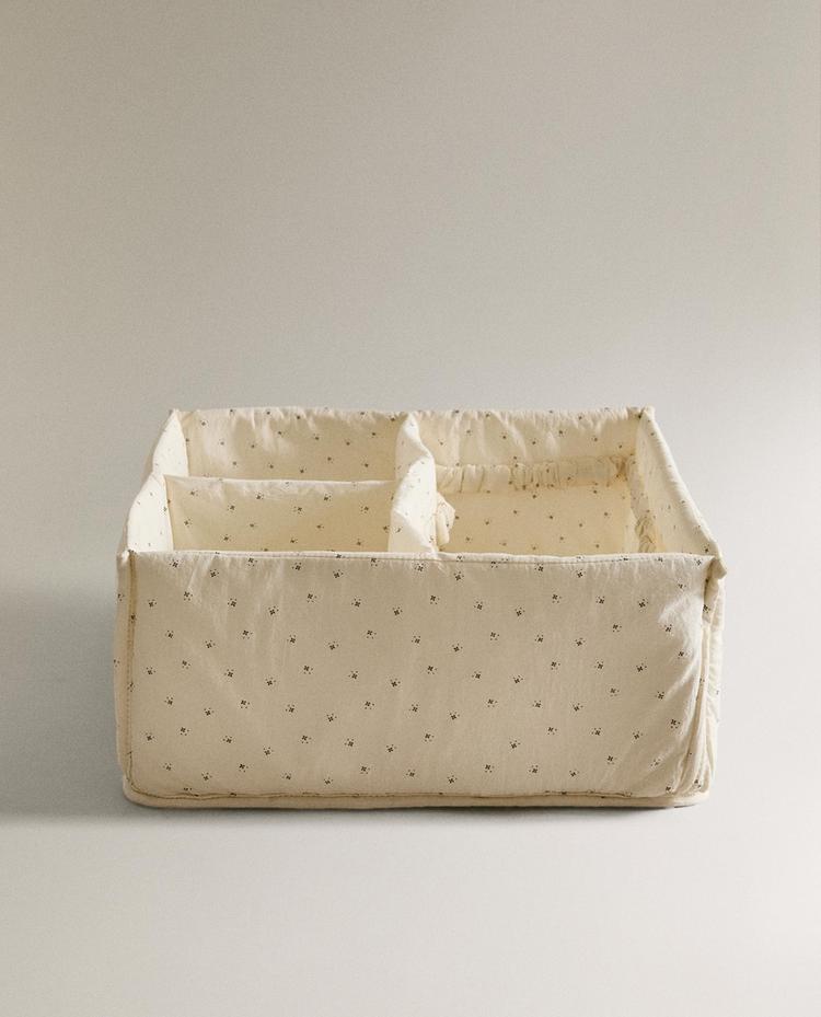 ZARA HOME ДЕТСКИЙ ХЛОПКОВЫЙ ОРГАНАЙЗЕР ДЛЯ ХРАНЕНИЯ С ЦВЕТОЧНЫМ ПРИНТОМ, ЗЕЛЕНЫЙ