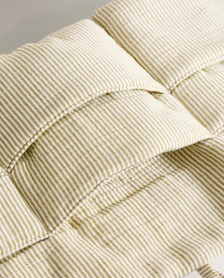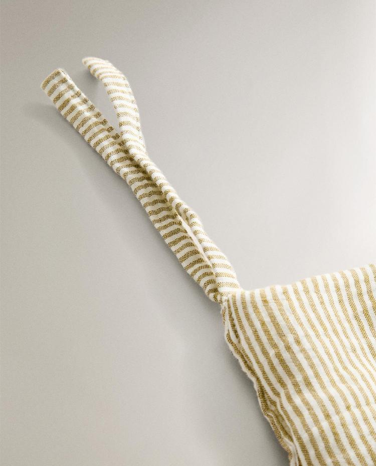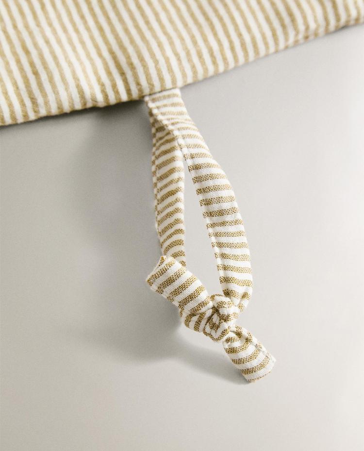 Подвесной органайзер из хлопчатобумажной муслиновой ткани с полосатым рисунком.