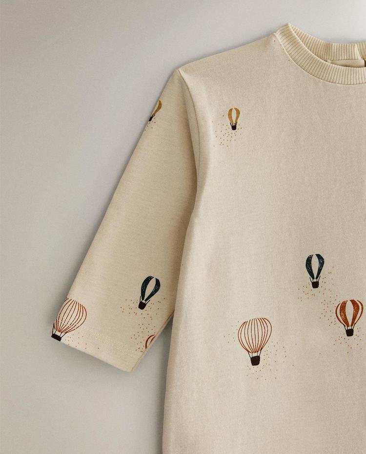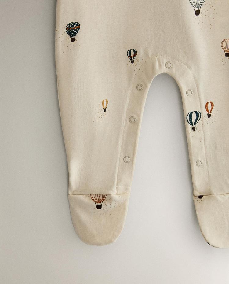 ZARA HOME ДЕТСКИЙ КОМБИНЕЗОН С ПРИНТОМ, КРЕМОВЫЙ