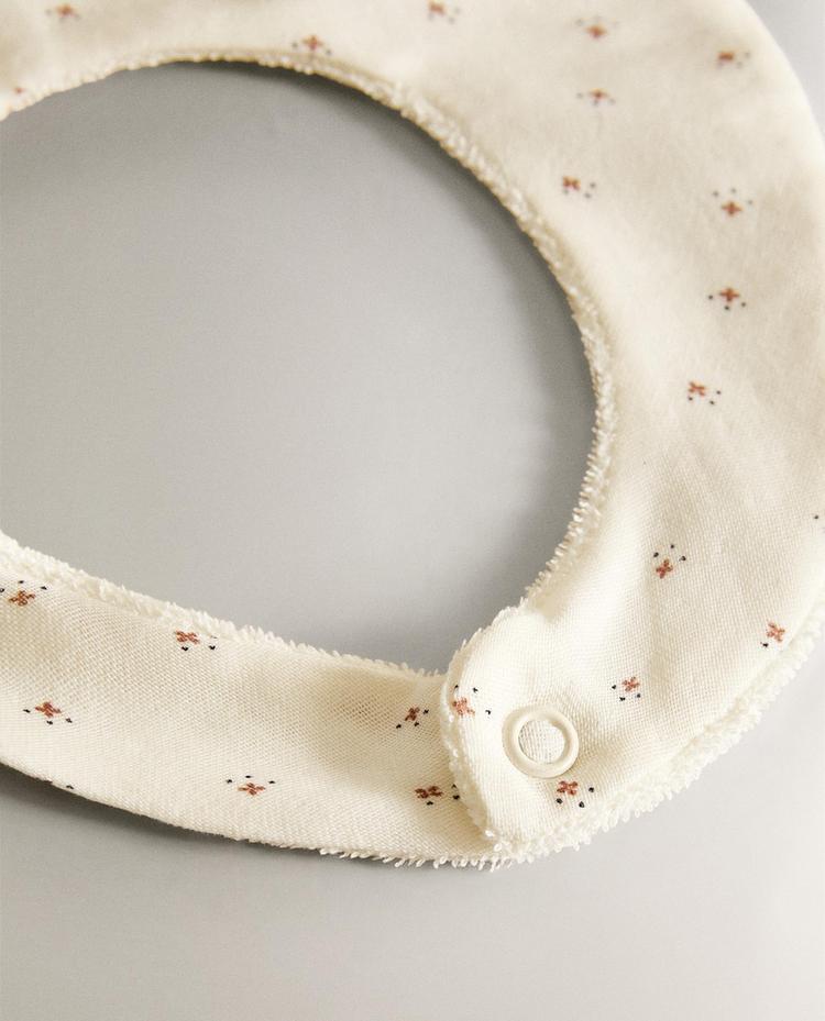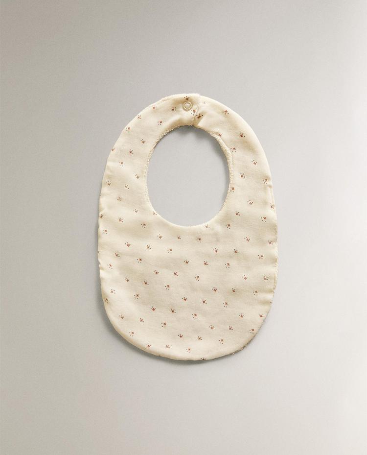 ZARA HOME ДЕТСКИЙ НАГРУДНИК С ЦВЕТОЧНЫМ ПРИНТОМ, ЭКРЮ