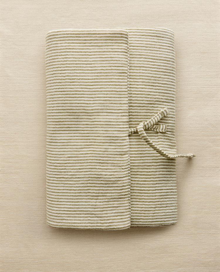 Портативный пеленальный коврик из хлопкового муслина с полосатым рисунком. Застежка на шнурке.