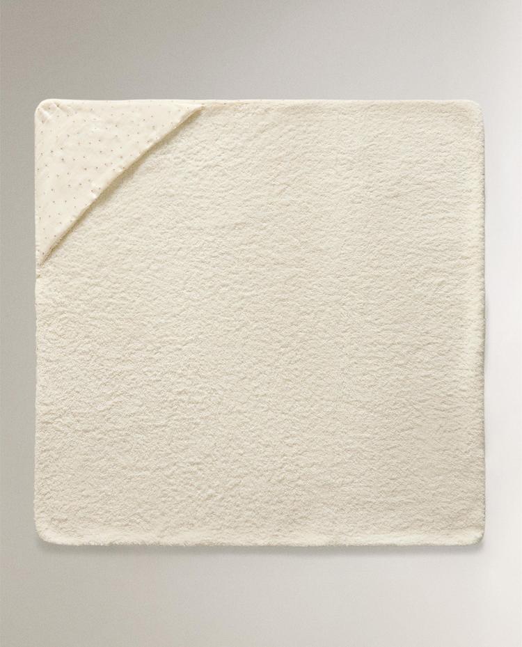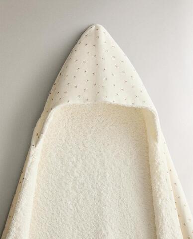 ZARA HOME ДЕТСКОЕ ПОЛОТЕНЦЕ С КАПЮШОНОМ И ЦВЕТОЧНЫМ ПРИНТОМ, ЭКРЮ