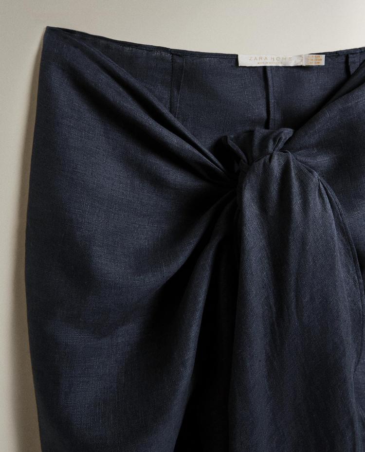 ZARA HOME ДЛИННОЕ ЛЬНЯНОЕ ПАРЕО, СИНИЙ