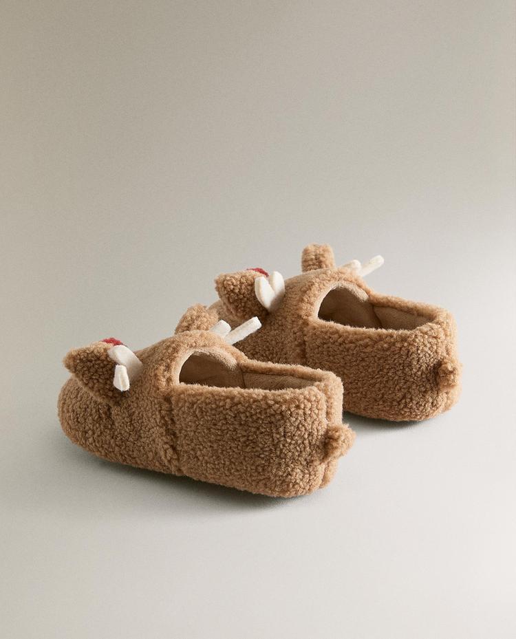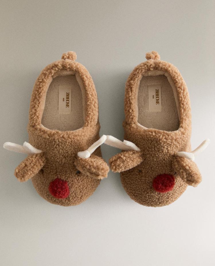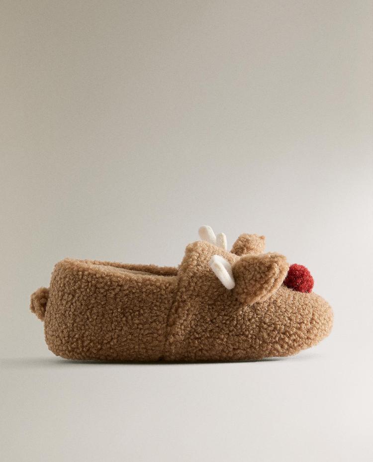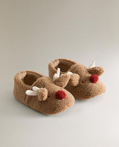 ZARA HOME ДОМАШНИЕ ТАПОЧКИ «СЕВЕРНЫЙ ОЛЕНЬ», КОРИЧНЕВЫЙ