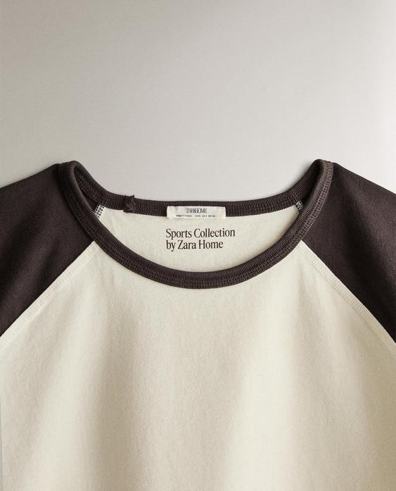 ZARA HOME ДВУХЦВЕТНАЯ ХЛОПКОВАЯ ФУТБОЛКА, ЭКРЮ