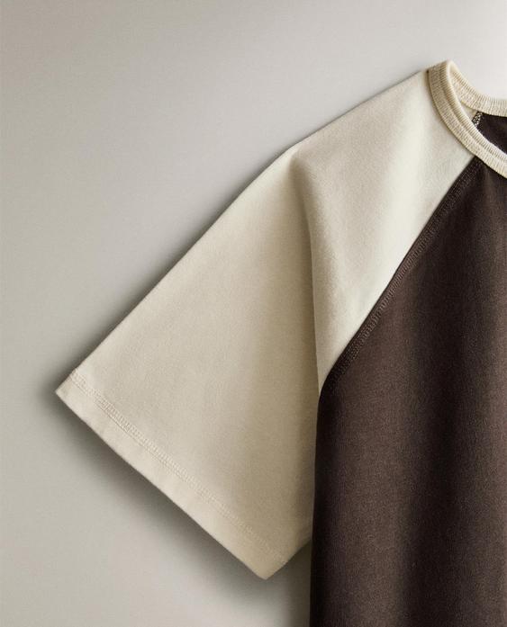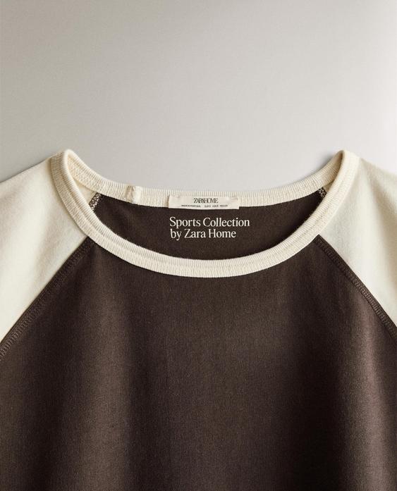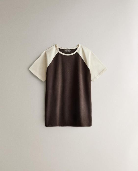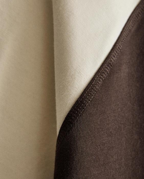 ZARA HOME ДВУХЦВЕТНАЯ ХЛОПКОВАЯ ФУТБОЛКА, КОРИЧНЕВЫЙ