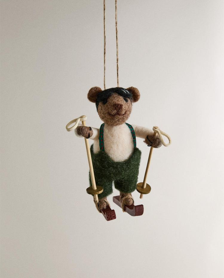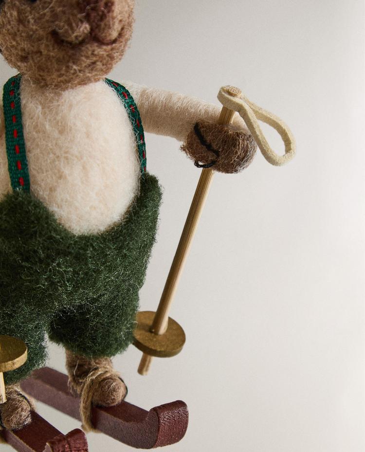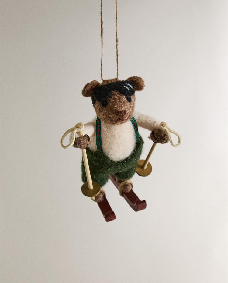 ZARA HOME ЕЛОЧНОЕ УКРАШЕНИЕ ИЗ ФЕТРА "МЫШОНОК-ЛЫЖНИК", КОРИЧНЕВЫЙ