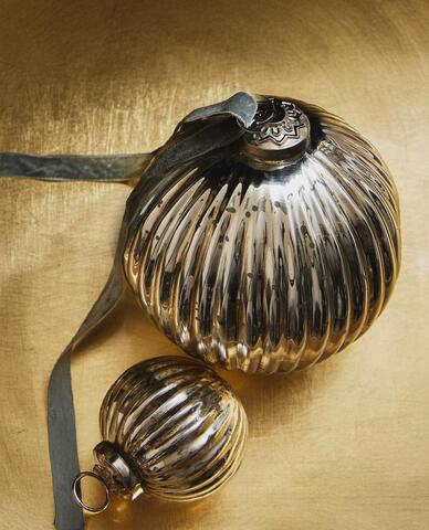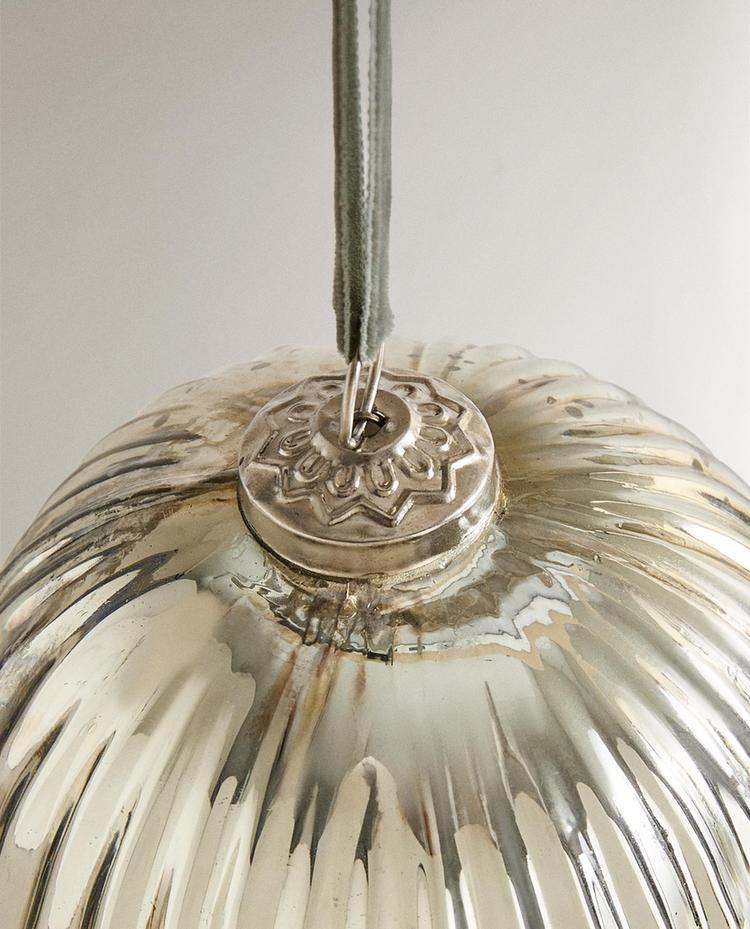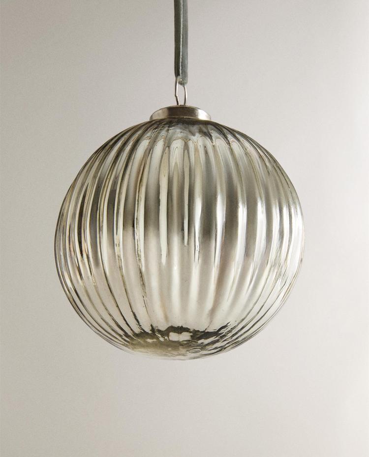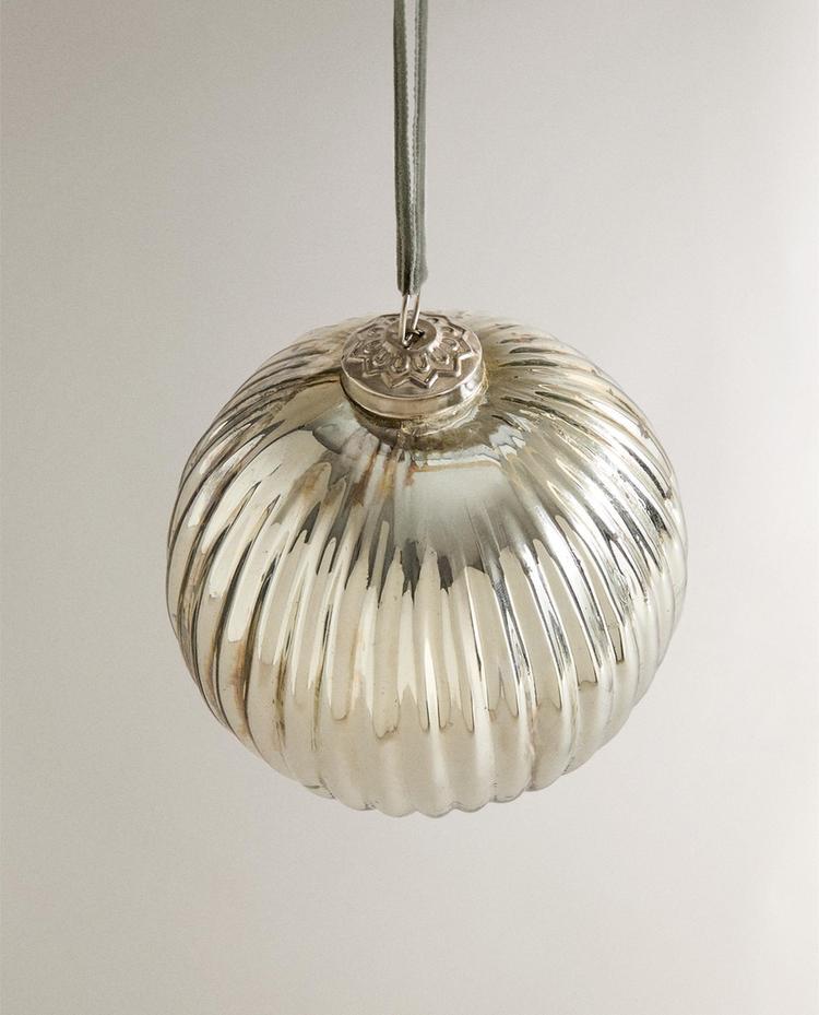 ZARA HOME ЕЛОЧНОЕ УКРАШЕНИЕ С РЕЛЬЕФНЫМ УЗОРОМ В ПОЛОСКУ, СЕРЕБРЯНЫЙ