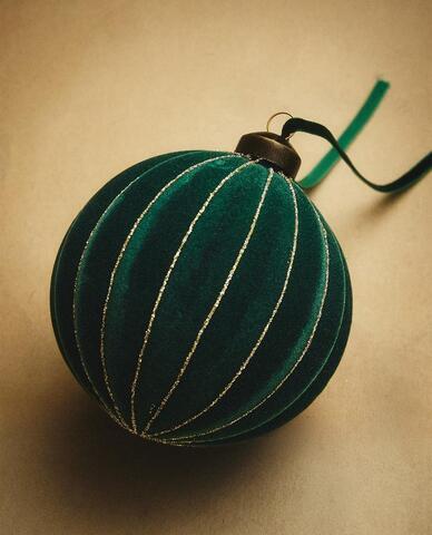 ZARA HOME БАРХАТНОЕ ЕЛОЧНОЕ УКРАШЕНИЕ В ФОРМЕ ШАРА, ЗЕЛЕНЫЙ