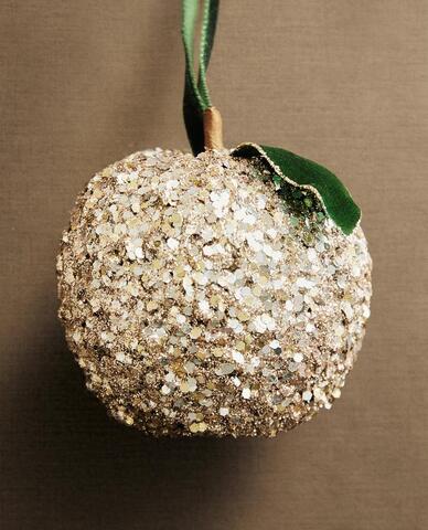ZARA HOME ЕЛОЧНОЕ УКРАШЕНИЕ «ЯБЛОКО» С БЛЕСТКАМИ, ЗОЛОТИСТЫЙ