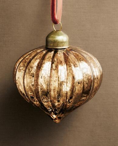 ZARA HOME ЕЛОЧНОЕ УКРАШЕНИЕ «ЮЛА» С РЕЛЬЕФНЫМ УЗОРОМ В ПОЛОСКУ, СЕРЕБРЯНЫЙ