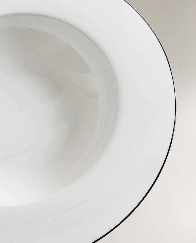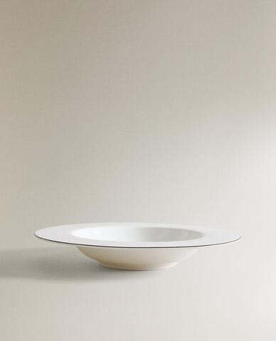 ZARA HOME ГЛУБОКАЯ ТАРЕЛКА ИЗ КОСТЯНОГО ФАРФОРА С КАЙМОЙ, БЕЛЫЙ/ЧЕРНЫЙ