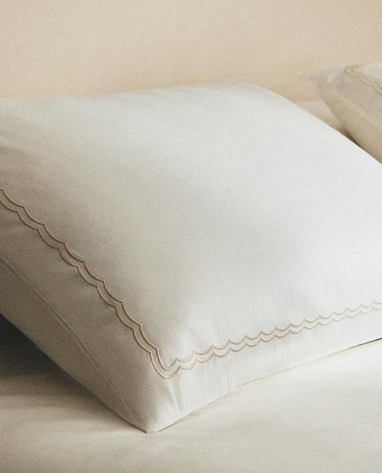 Наволочка из хлопкового сатина плотностью 300 нитей с фестончатой отделкой по краю.