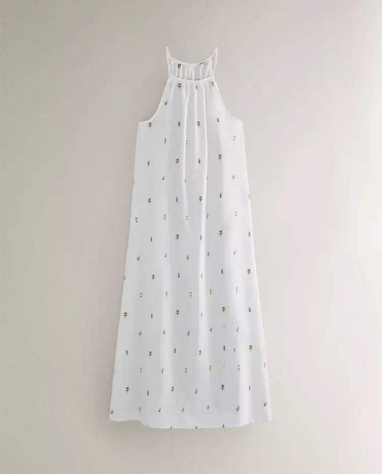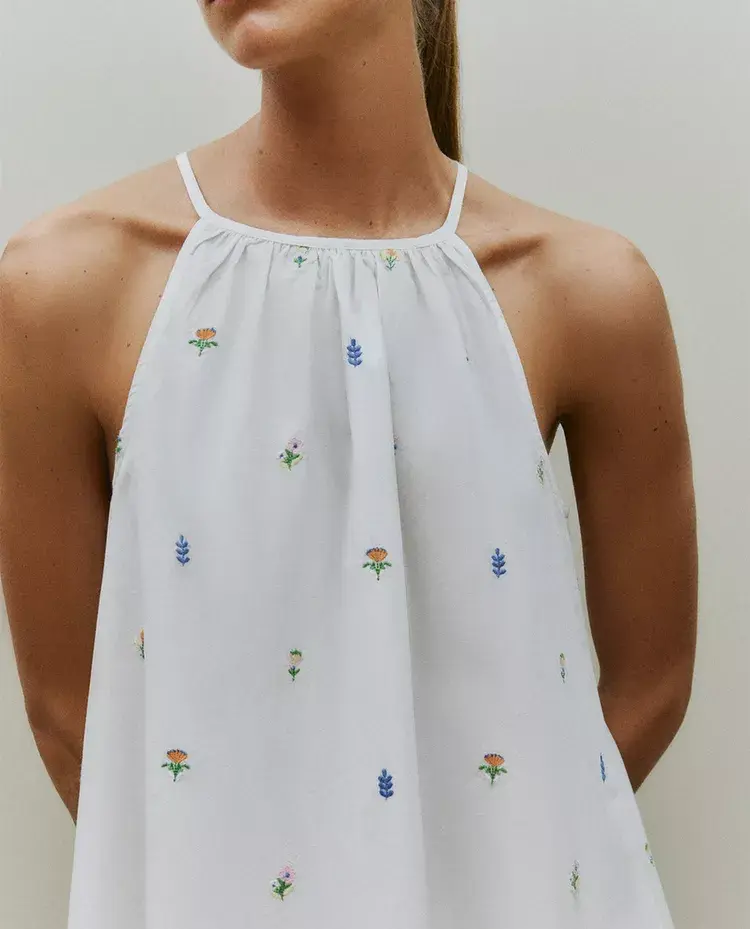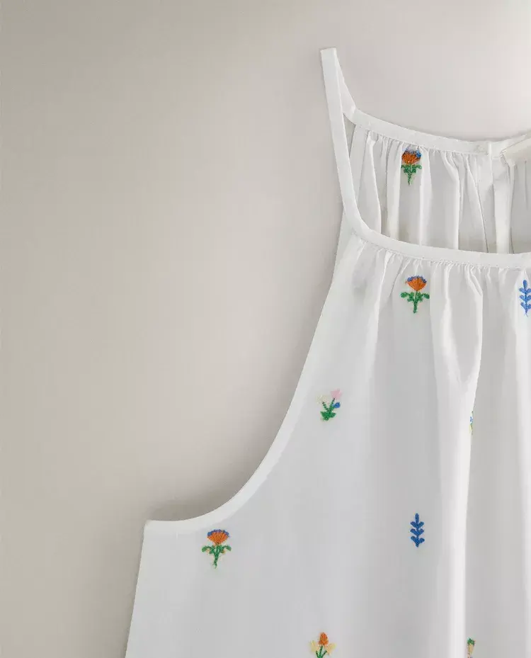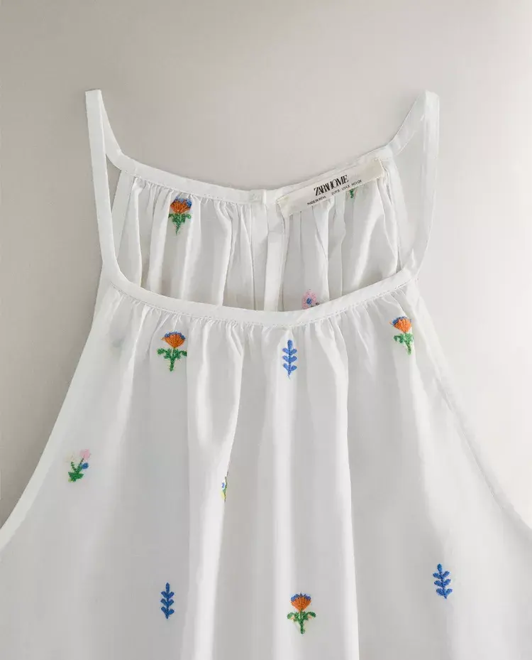 ZARA HOME Хлопковая ночная рубашка с мини-принтом в виде цветов, белый