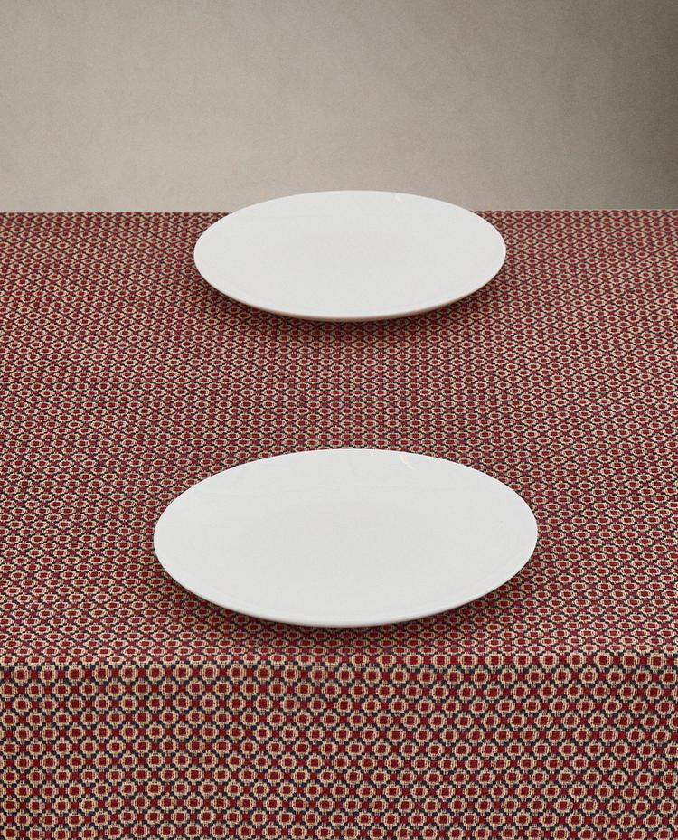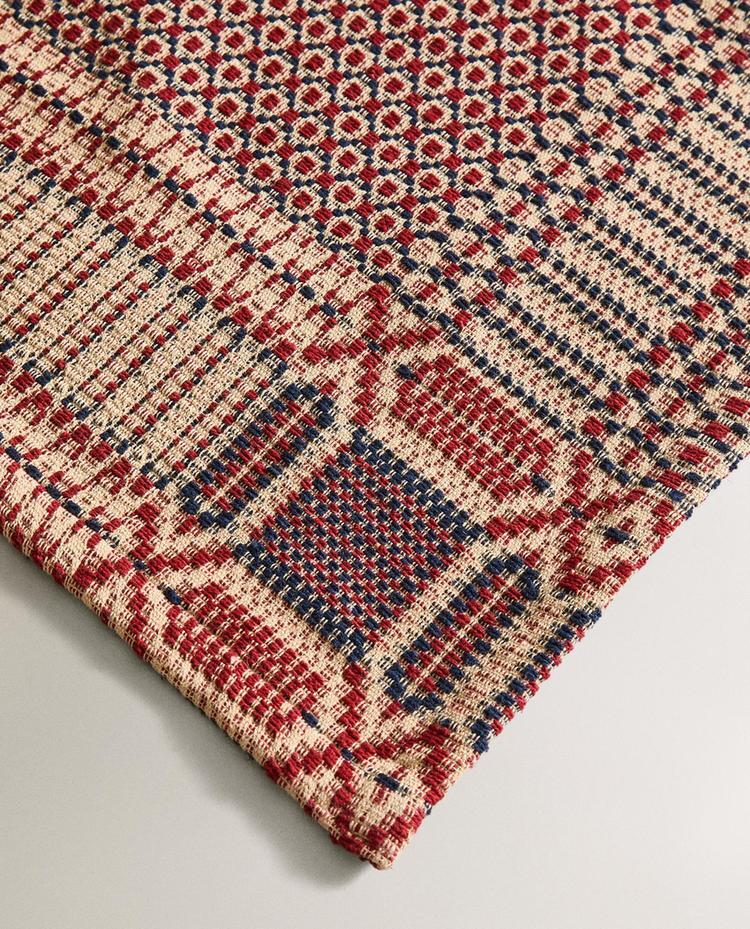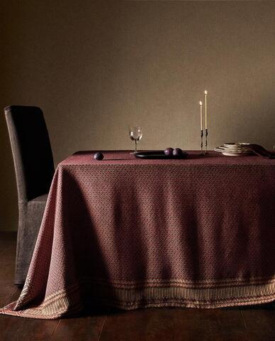 ZARA HOME ХЛОПКОВАЯ СКАТЕРТЬ С КОНТРАСТНЫМ УЗОРОМ, КРАСНЫЙ