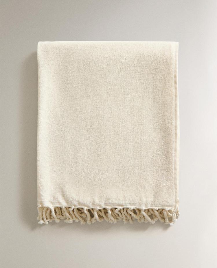 ZARA HOME ХЛОПКОВОЕ ПЛЯЖНОЕ ПОЛОТЕНЦЕ БЕЗ РУКАВОВ, ЦВЕТ СЛОНОВОЙ КОСТИ