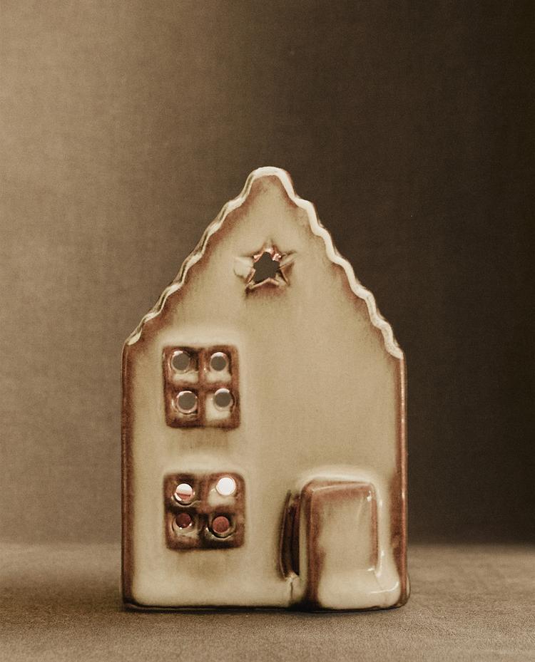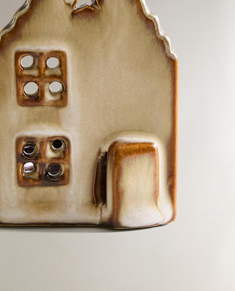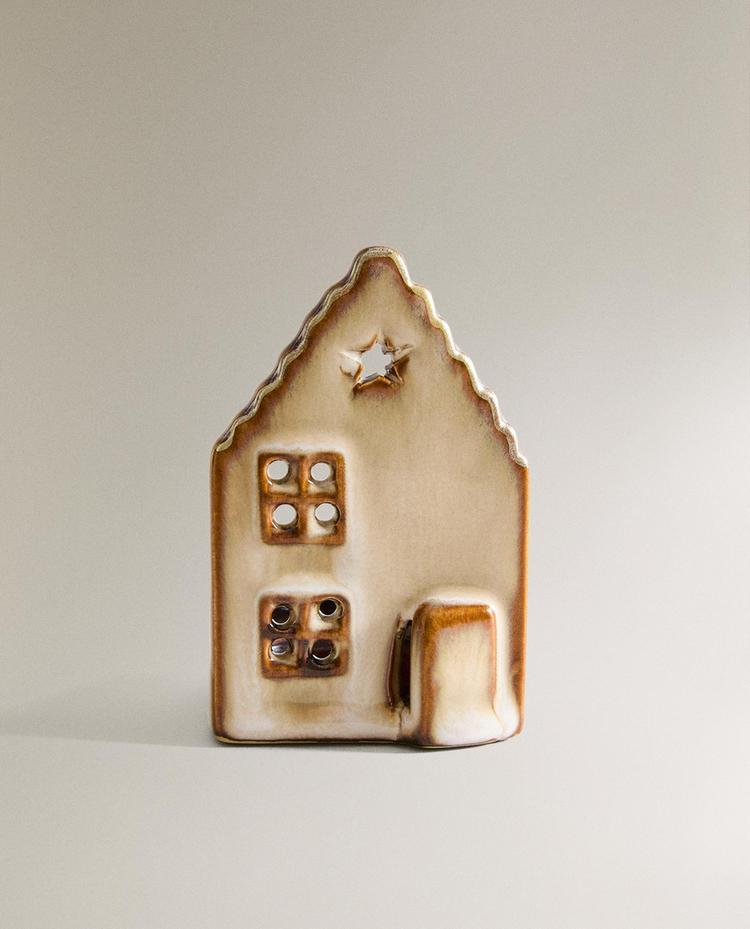 ZARA HOME КЕРАМИЧЕСКИЙ РОЖДЕСТВЕНСКИЙ ПОДСВЕЧНИК, КОРИЧНЕВЫЙ