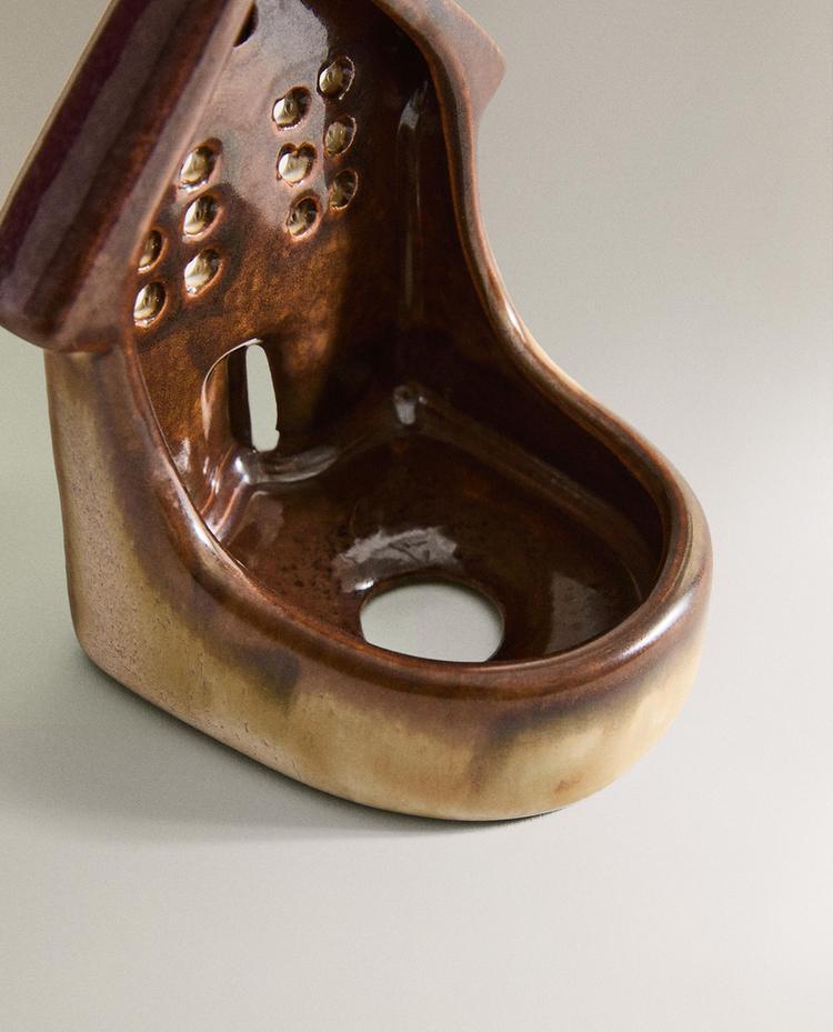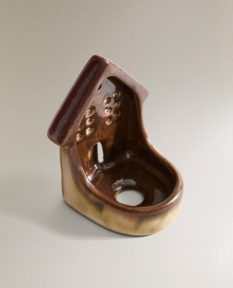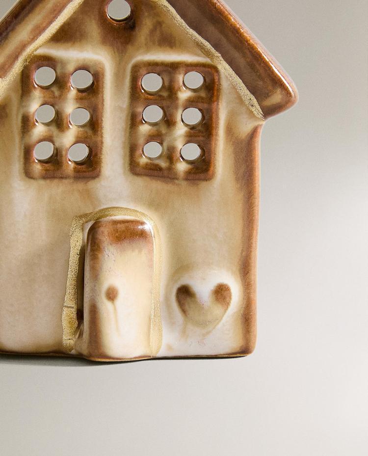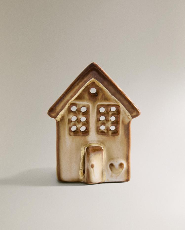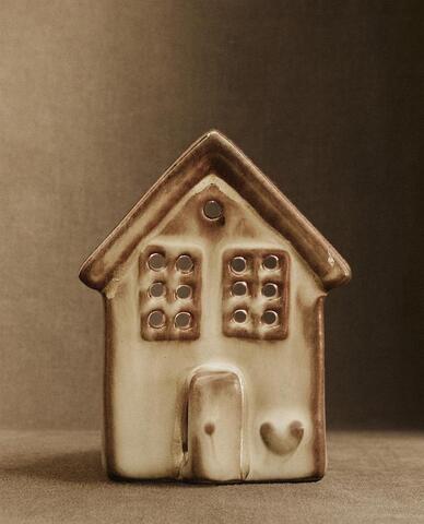 ZARA HOME КЕРАМИЧЕСКИЙ РОЖДЕСТВЕНСКИЙ ПОДСВЕЧНИК В ФОРМЕ ДОМИКА, КОРИЧНЕВЫЙ