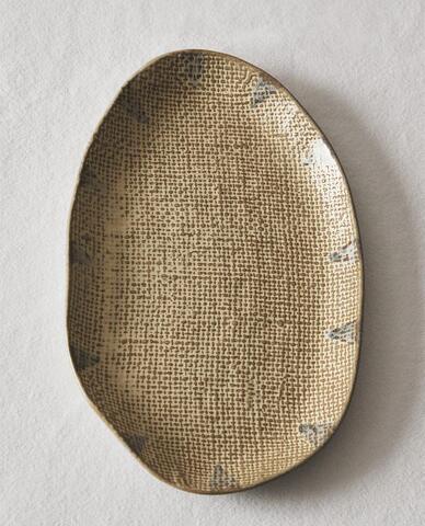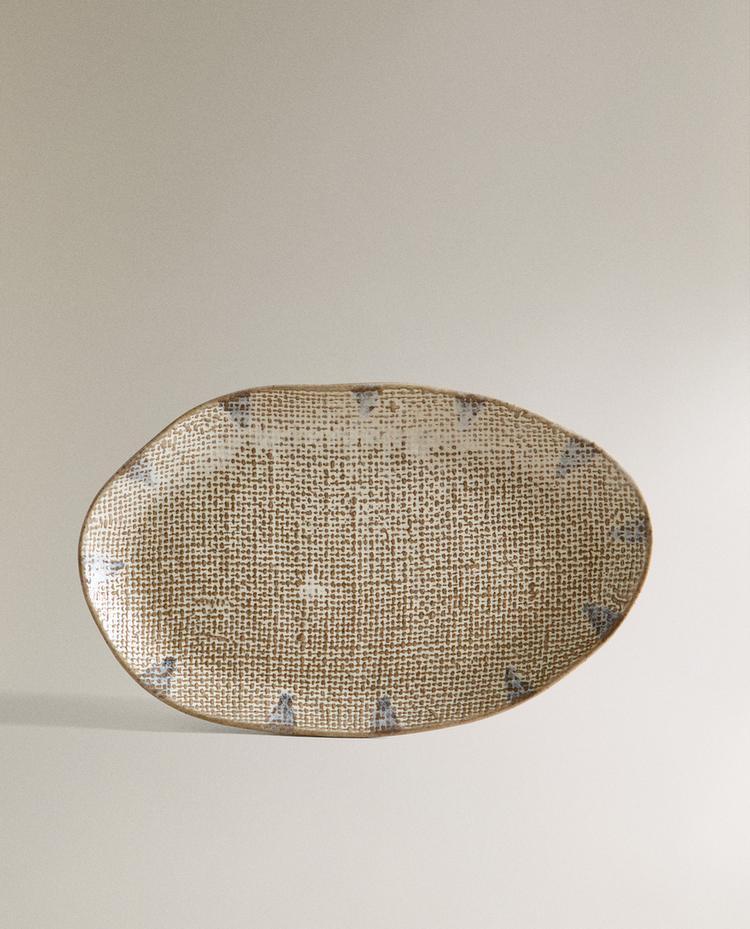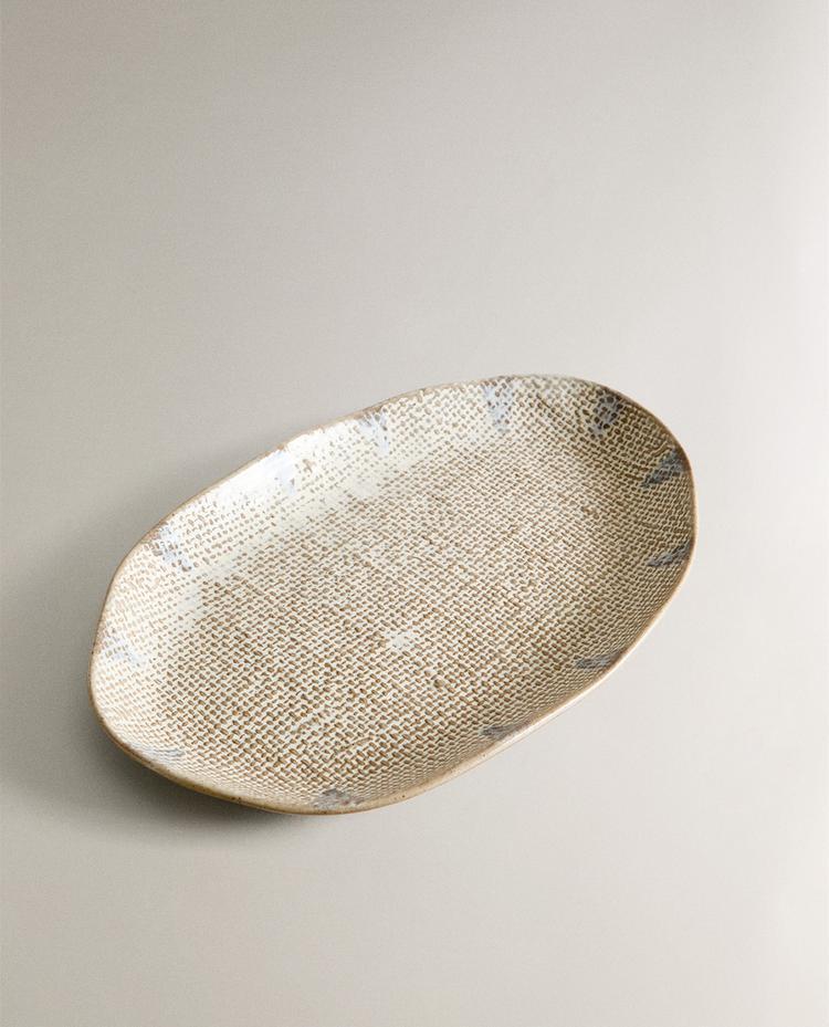 ZARA HOME КЕРАМИЧЕСКОЕ СЕРВИРОВОЧНОЕ БЛЮДО, ЭКРЮ/СИНИЙ
