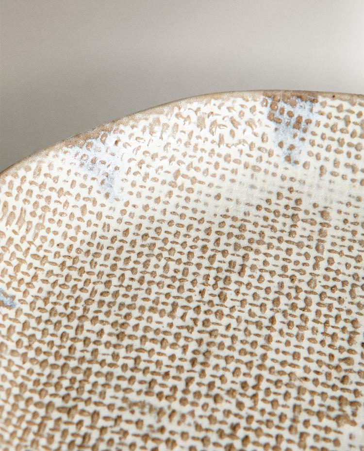 Керамическое сервировочное блюдо с фактурной отделкой и треугольным узором.