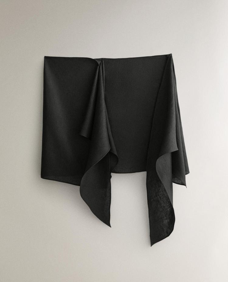 ZARA HOME КОРОТКОЕ ЛЬНЯНОЕ ПАРЕО, ЧЕРНЫЙ