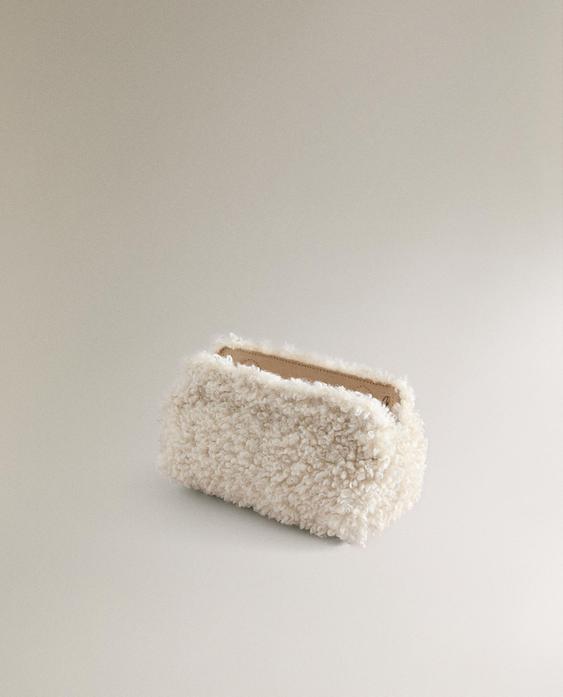 ZARA HOME КОСМЕТИЧКА ИЗ ИСКУССТВЕННОГО МЕХА, ЭКРЮ