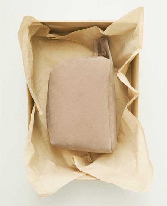 ZARA HOME КОСМЕТИЧКА СРЕДНЕГО РАЗМЕРА ИЗ РАЗДЕЛЕННОЙ КОЖИ, ЭКРЮ