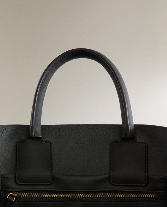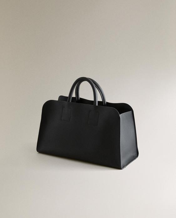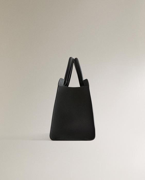 ZARA HOME КОЖАНАЯ МИНИ-СУМКА-ТОУТ, ЧЕРНЫЙ